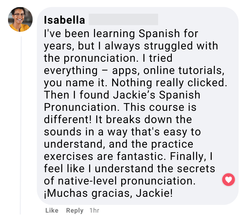 With the right guidance (that's me!) and practice, you can achieve a native-like accent and speak Spanish with confidence.