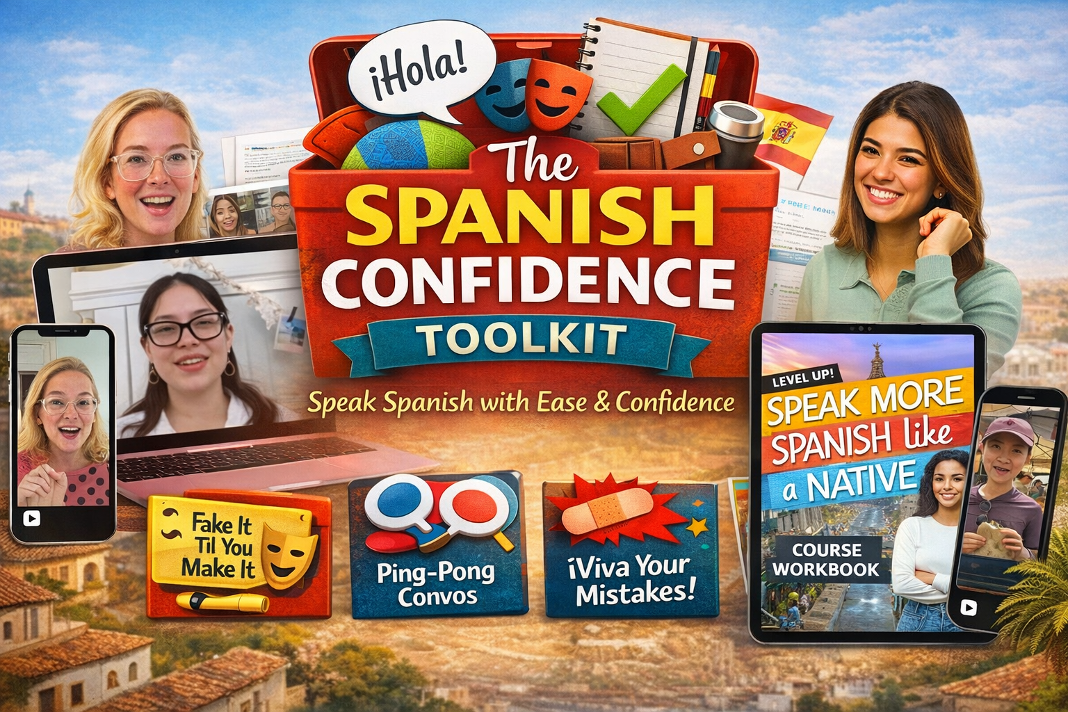 Get practical tools to stop overthinking and start speaking in Spanish. Keep conversations going, recover from mistakes, and use Spanish in real life without waiting to feel ready.
